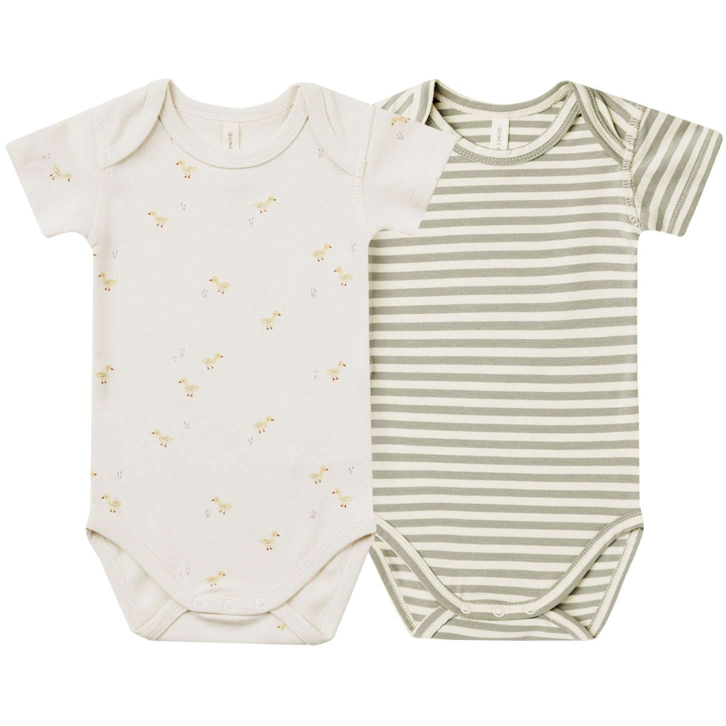 Quincy Mae Short Sleeve Bodysuit, 2 Pack | Ducks, Sage Stripe